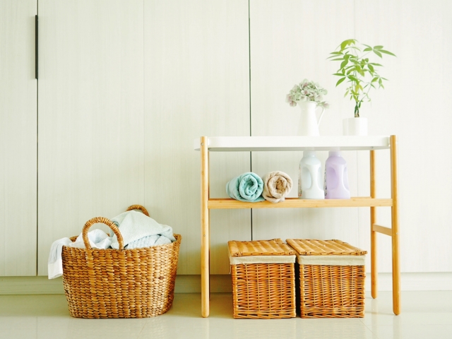 • おしゃれな収納ボックス: 生活感を隠して整った印象に。